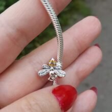 Extraordinary! One of the cutest charm I ever saw! Very nice communication with the store! I was thrilled when I opened this little bee. So very pretty, sparkly and well made yet delicate and lovely. It is a Christmas gift for my granddaughter. Her name begins with B so I will give her a Bee. Also to remind her that I will always B with her when she wears it.I highly recommend!