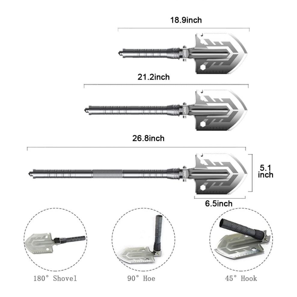 - Compact and Portable: The shovel easily folds into a small, lightweight design, allowing for convenient storage and easy portability in your backpack or gear bag.