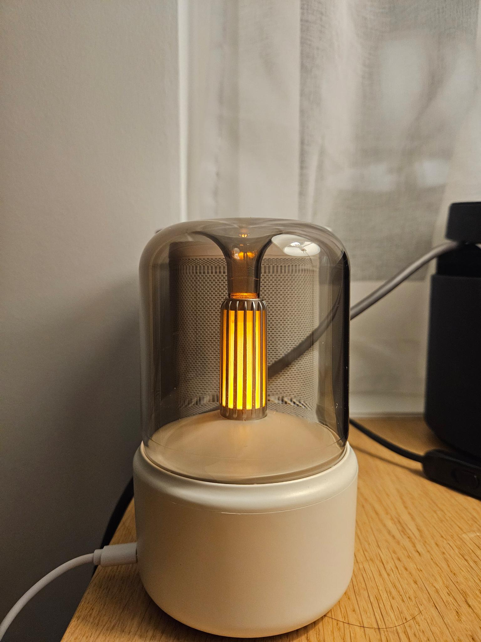 Pretty and calming, sets the mood. Will be great in Summer with bug repellent Essential oils. Thinking of using both of them and plugging into a mobile battery bank on table in summer. Prevent a lot of cable mess and annoying bugs!